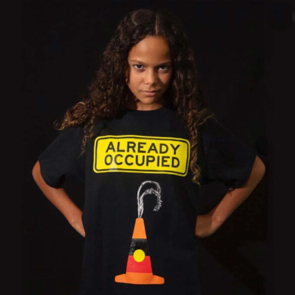 Buy Blak › ALREADY OCCUPIED : T-SHIRT Image 1 of 3 Image 2 of 3 Image 3 of 3 ALREADY OCCUPIED : T-SHIRT $55.00 ALREADY OCCUPIED. A critical marker of Aboriginal Sovereignty.Artwork by Libby Harward: Already Occupied. GENERAL: XS S M L XL 2XL 3XL 4XL NOTIFY ME WHEN BACK IN STOCK Add To Cart Added! ALREADY OCCUPIED. A critical marker of Aboriginal Sovereignty.Artwork by Libby Harward: Already Occupied. You Might Also Like GET OFF MY PROPERTY - UNCLE NOEL BLAIR $60.00 Sold Out REDUCE GREED T $55.00 People Must Not Know Tshirt by Uncle Noel $60.00 WRONG WAY GO BLACK: TSHIRT $55.00